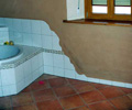 In dem im Jahr 2001 neu errichteten Eichenfachwerkhaus mit Lehmsteinausfachung wurde innenseitig eine Hanfleichtlehmvorsatzschale gestellt. Im Aussenbereich wurde ein Sumpfkalkputz aufgebracht. Die Gestaltung der Lehmputze im gesamten Innenbereich erfolgte mit farbigen Lehmen. Das gesamte Haus wird mittels Wandheizungen beheizt. Das Haus hat eine Aufsparrendämmung aus Hanf. Im Wohnbereich des Erdgeschoß befindet sich ein Grundofen mit beiheizter Sitzbank- und Lehne der gleichzeitig als Raumteiler dient.
